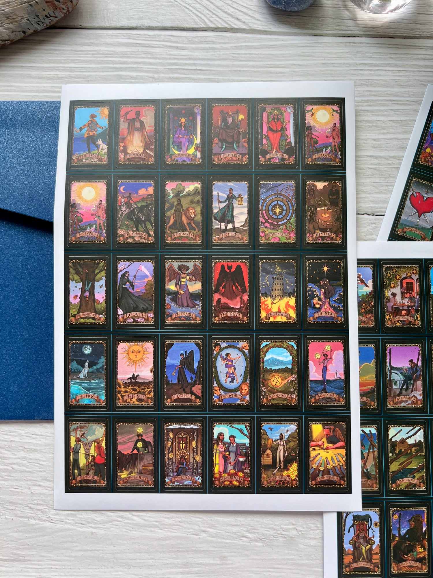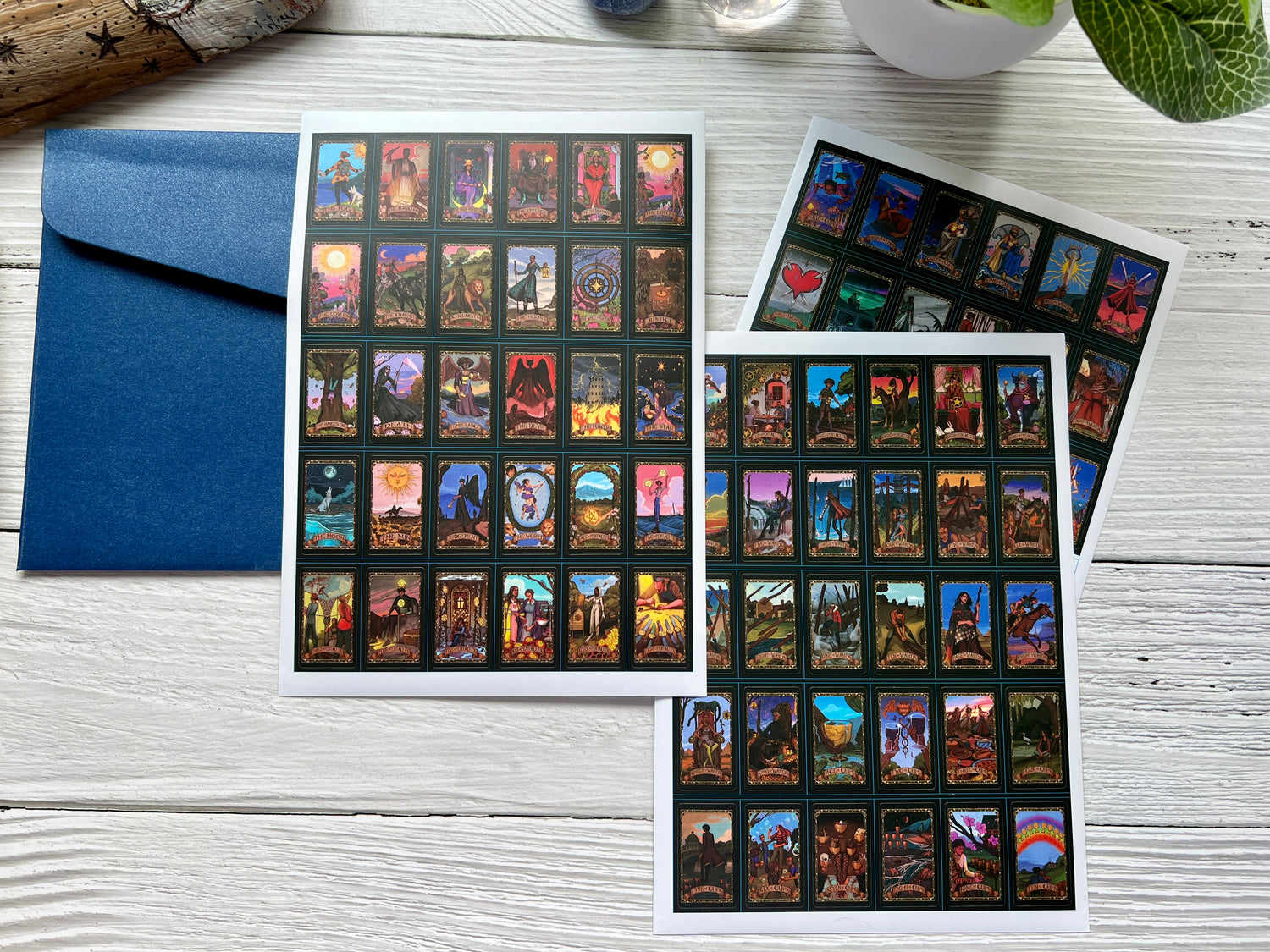 One set of high quality Tarot stickers for you to use in your tarot journal featuring the stunning Cosmic Wisdom Tarot art. There are 78 stickers in this set.