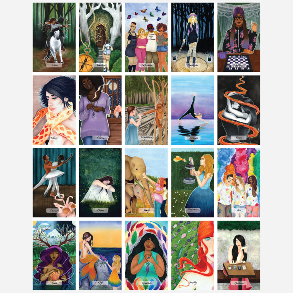 Awakened Soul Oracle is a modern deck that includes women of all shapes, sizes, and ethnicities with carefully woven symbols and card meanings.